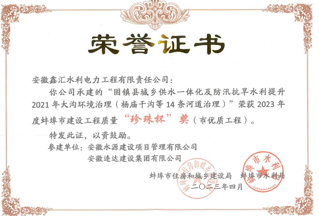 2023年度蚌埠市建设工程质量“珍珠杯”奖
